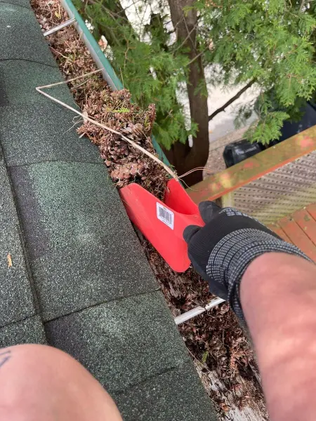 Gutters exist to drain water. When leaves, moss, and debris build up, water stops flowing forward and starts spilling backward. This leads to staining on siding, rotting trim, and moisture buildup near foundations. These problems start quietly and show up later as repair costs.